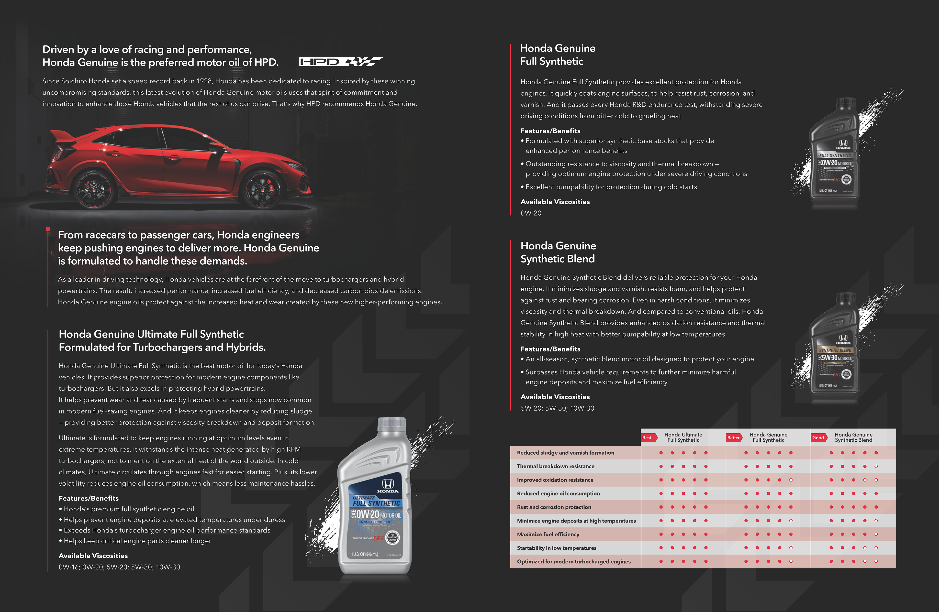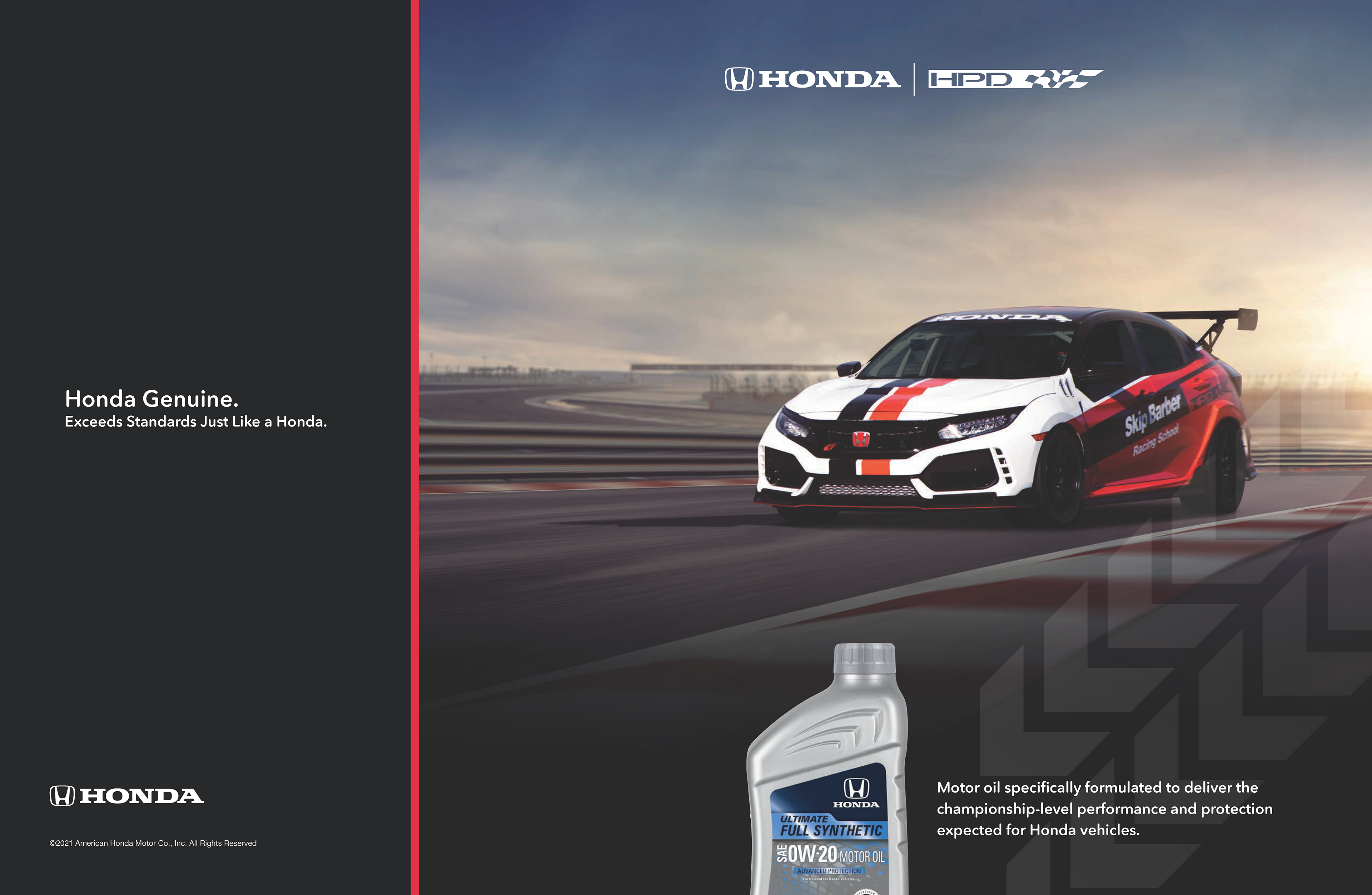 A brochure telling dealerships Honda Genuine Motor Oil is formulated to provide winning performance and protection to Honda vehicles. (Click to enlarge.)
