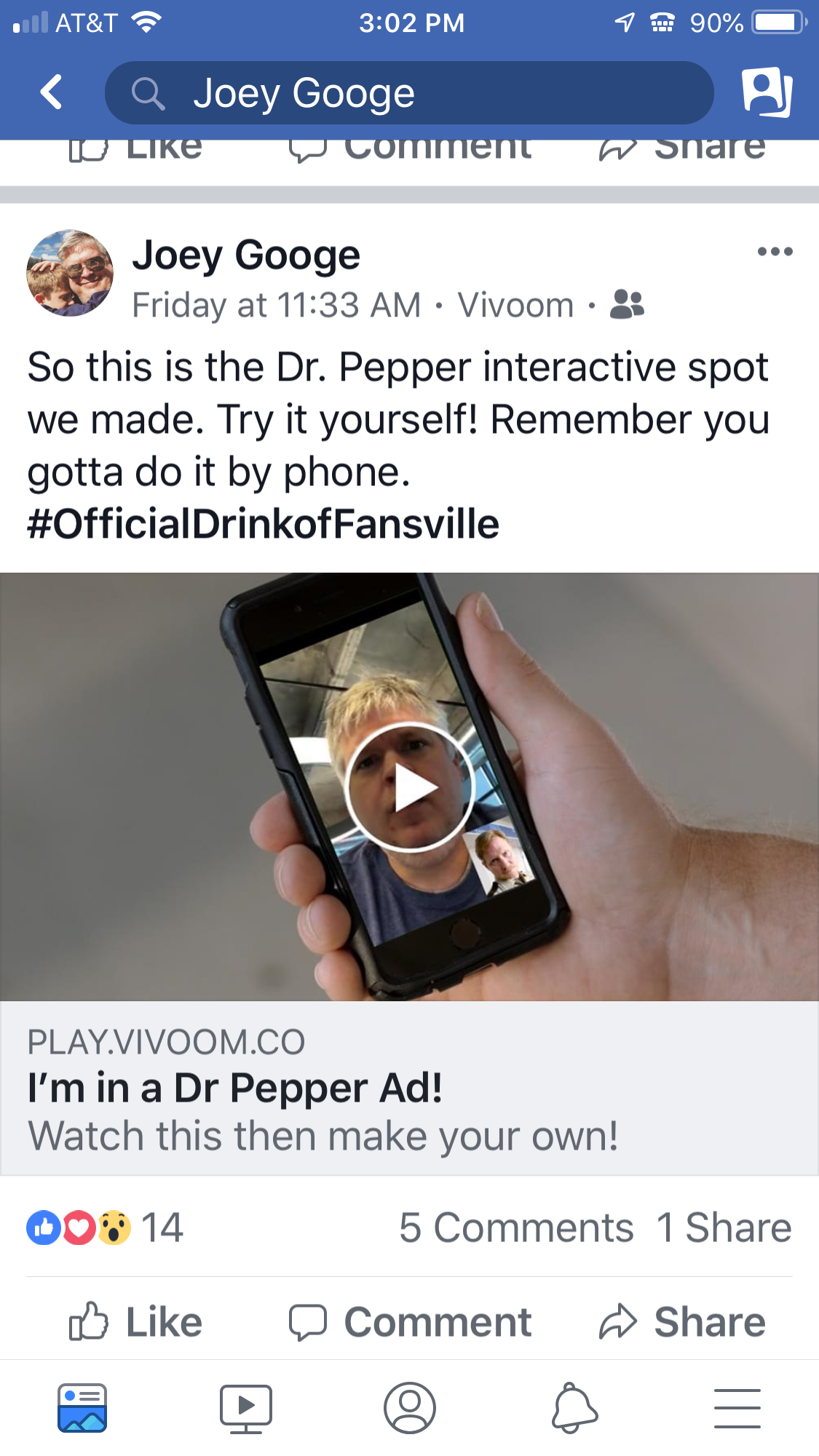 Fans get a Facebook or Instagram invitation to “Star in a Dr Pepper commercial.” People who click the link can upload videos where they give their alibis to a deputy who has accused them of vandalizing a college mascot.